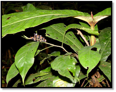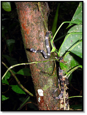 Sometimes we’d find herps actively on the move at night, such as these snakes in search of sleeping lizards.