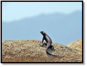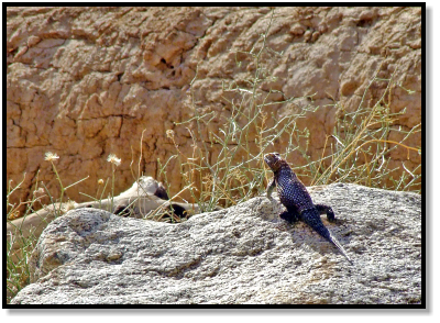 On a distant boulder I notice the profile of a larger lizard. I get closer, it turns to face me, and I’m excited to see a