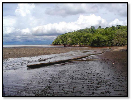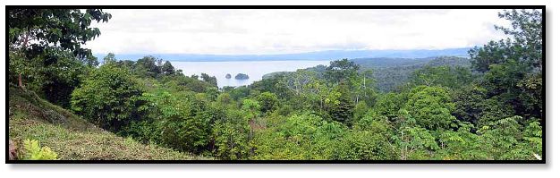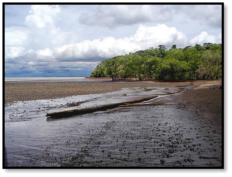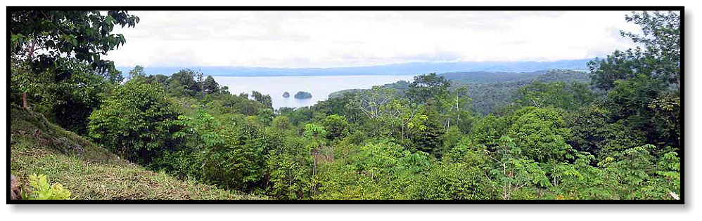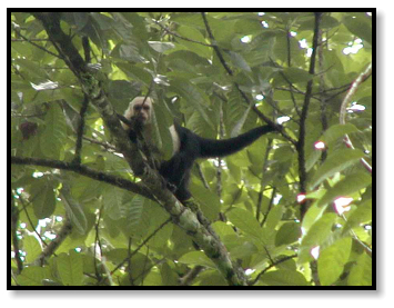 that lies to the east of the Osa Peninsula. High above us in the forest canopy we are shadowed by monkeys, who