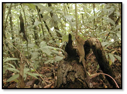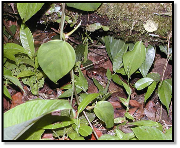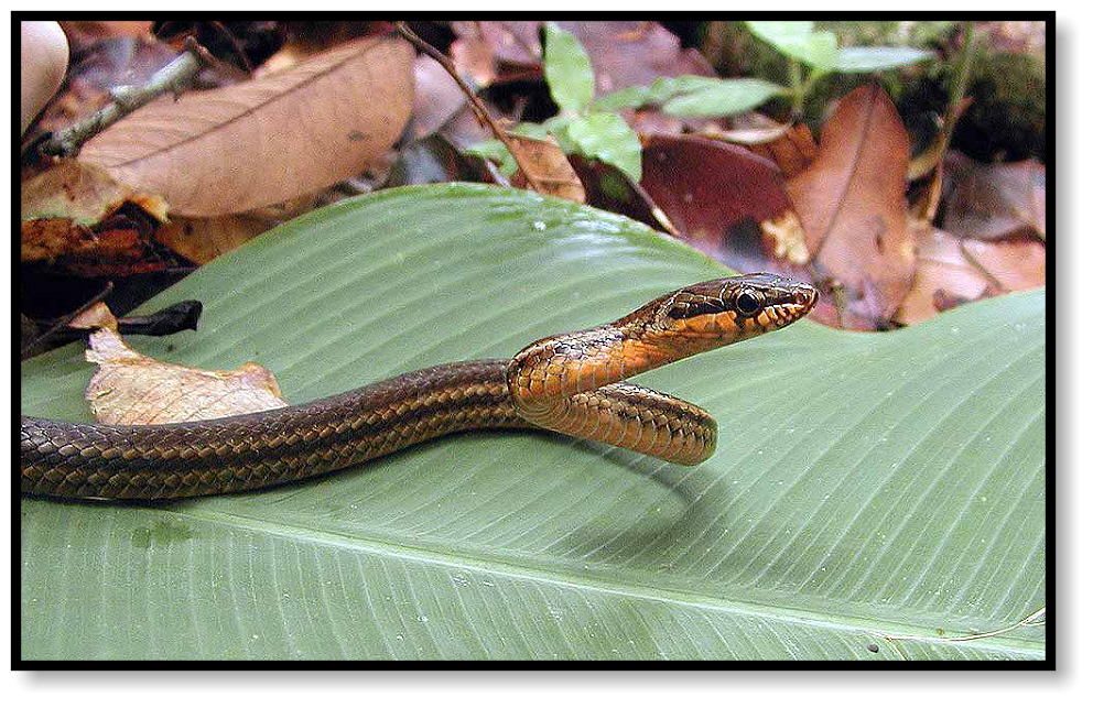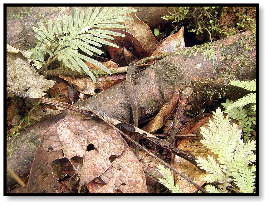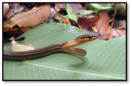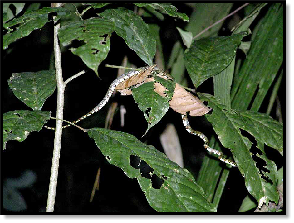 There are also herps about, both up in the trees and down on the ground. Arboreal snakes are found among the