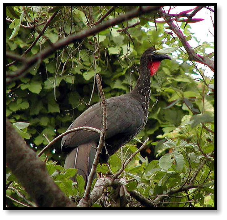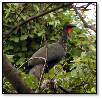 monkey, but to our surprise it turns out to be a bird the size of a turkey, a Crested Guan, sporting a flashy red dewlap