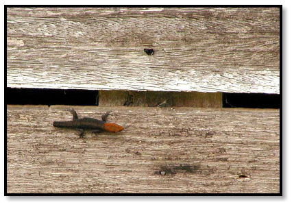 Outside we scan the wooden walls and stone foundation for any sign of herps, and one at a time they reveal