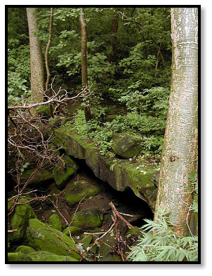 way from the stream, cross a clearing, and head down a path on the other side of the forest.
