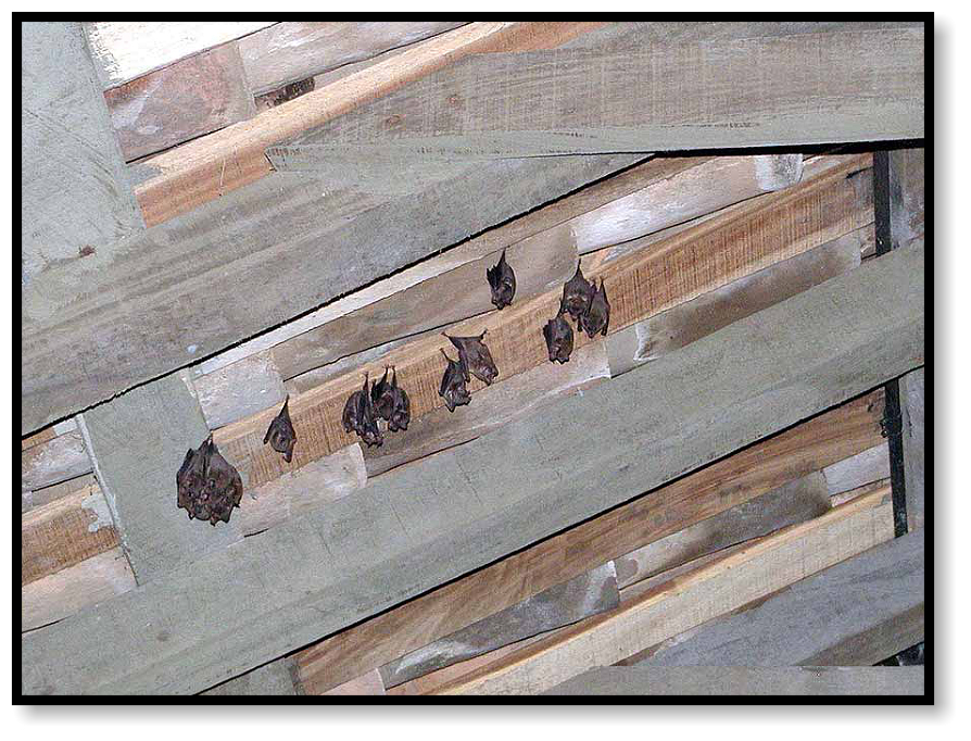We enter an empty building and search for snakes. Looking up to the rafters we find instead a bunch of bats