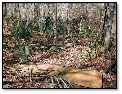 We walk around the woods and see some encouraging signs, such as lizards basking on branches. At least a few
