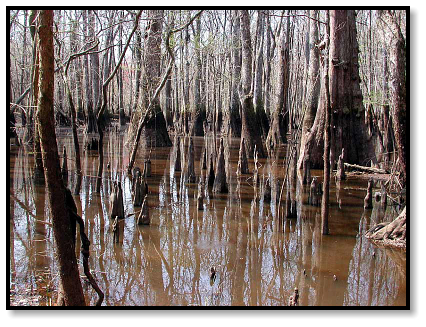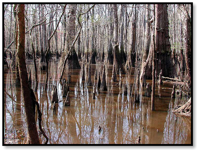 The next day starts beside a swamp, the cypress still barren and gray and waiting for warmer weather. So are