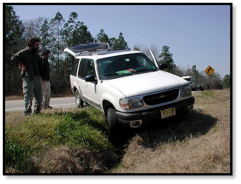 talkies: “Uh, guys, there’s a big Diamondback over here.” Off we run! Flying over broken glass (well, actually I trip),