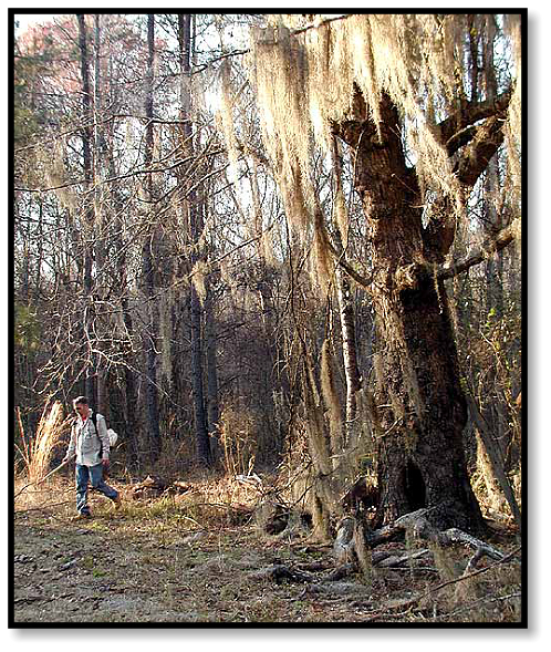 We finish the day amidst oaks and Spanish moss, exploring the ruins of an abandoned house. I turn a long piece