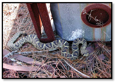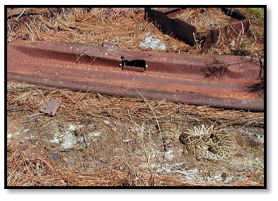 front of him that he never noticed this 4' Rattlesnake right behind him! She was basking against a rusty appliance, and