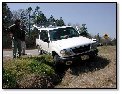 First Danny gets caught in a speed trap, and then he gets caught in a real trap (where did that ditch come from?).