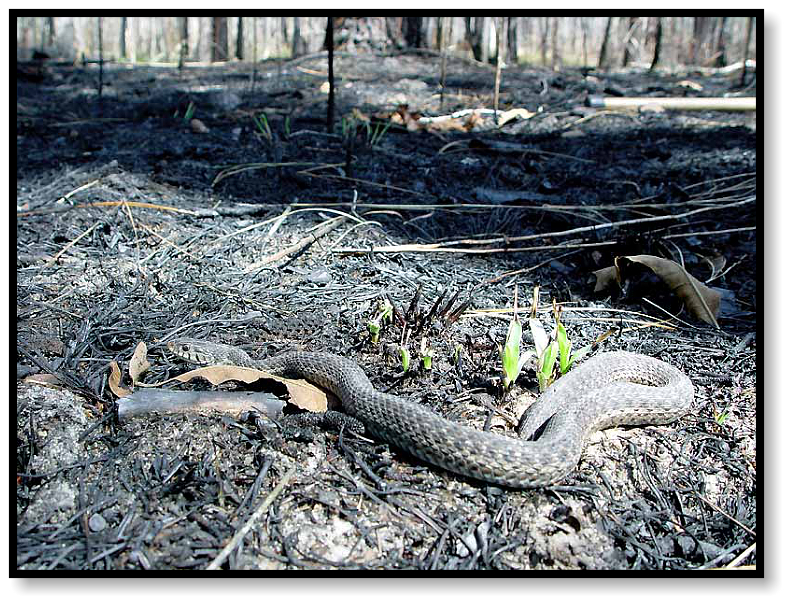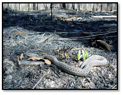 Most snakes survive the fires by seeking refuge underground. Unfortunately, not all creatures can escape so