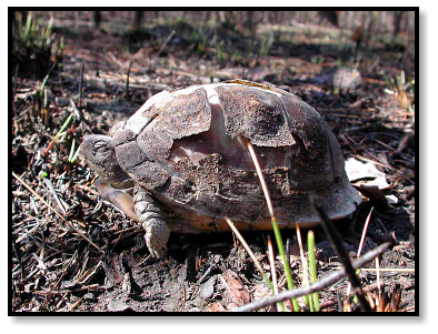 scutes cracked and peeling from the intense heat. Incredibly, it’s still alive. These resilient reptiles sometimes recover