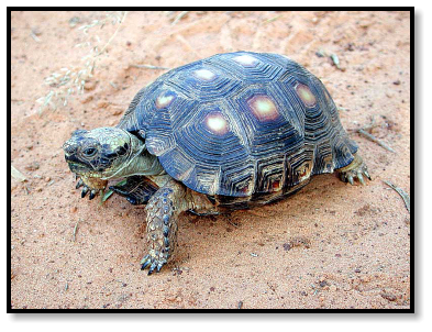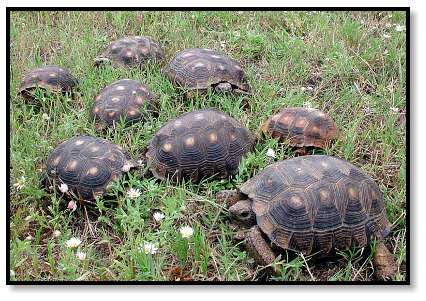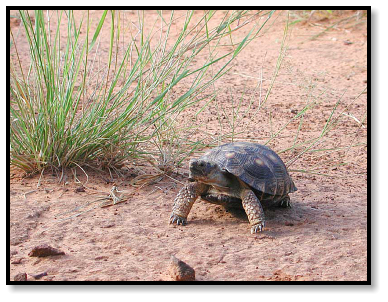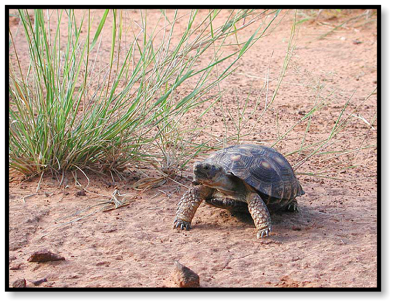 Pretty soon we spot our first tortoise, a juvenile out for a morning stroll. Tom records the time, temp, and