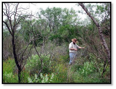 thornscrub. Tom’s in the lead, turning his antenna to follow the signals of snakes implanted with radio transmitters.
